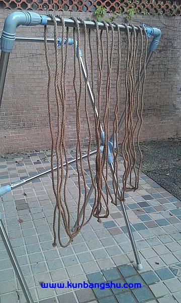 接着要把麻绳阴干,有人会用洗衣机先进行低速脱水,这样阴干的时间可以减少许多