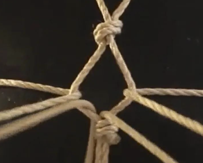 5. 固定绳子:回到外侧,在中间以扭十字结固定。