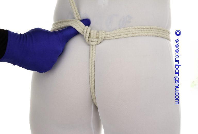 - 在将直接压在阴蒂上的位置打一个过手结或8字结。